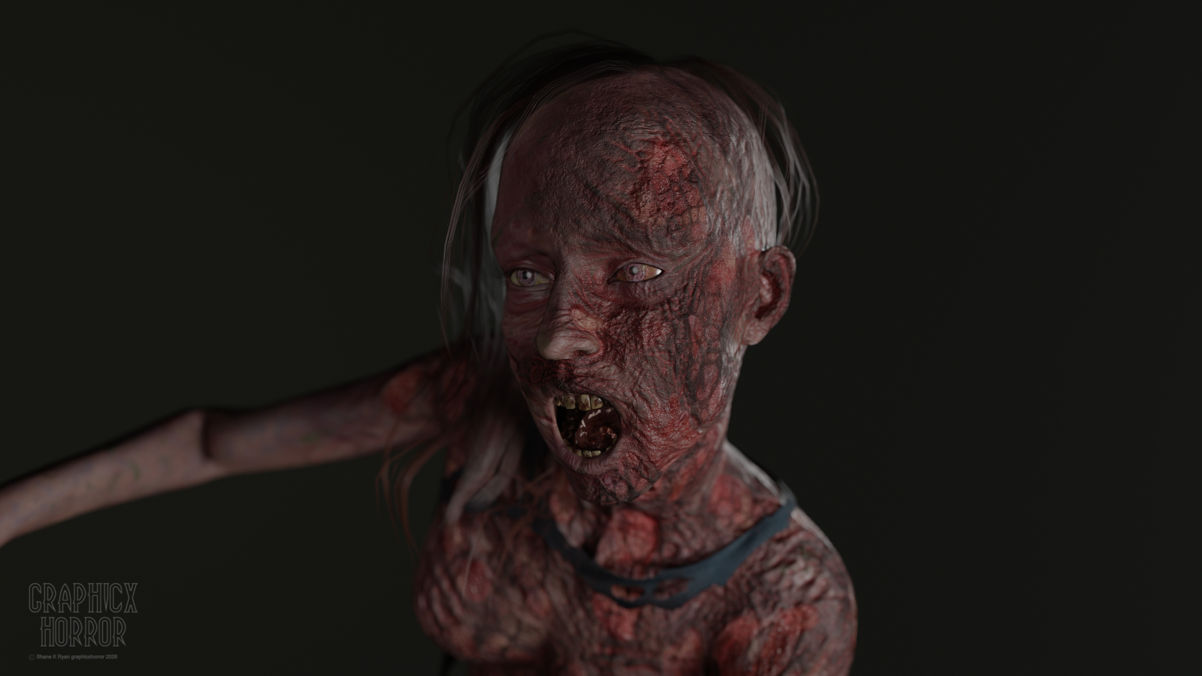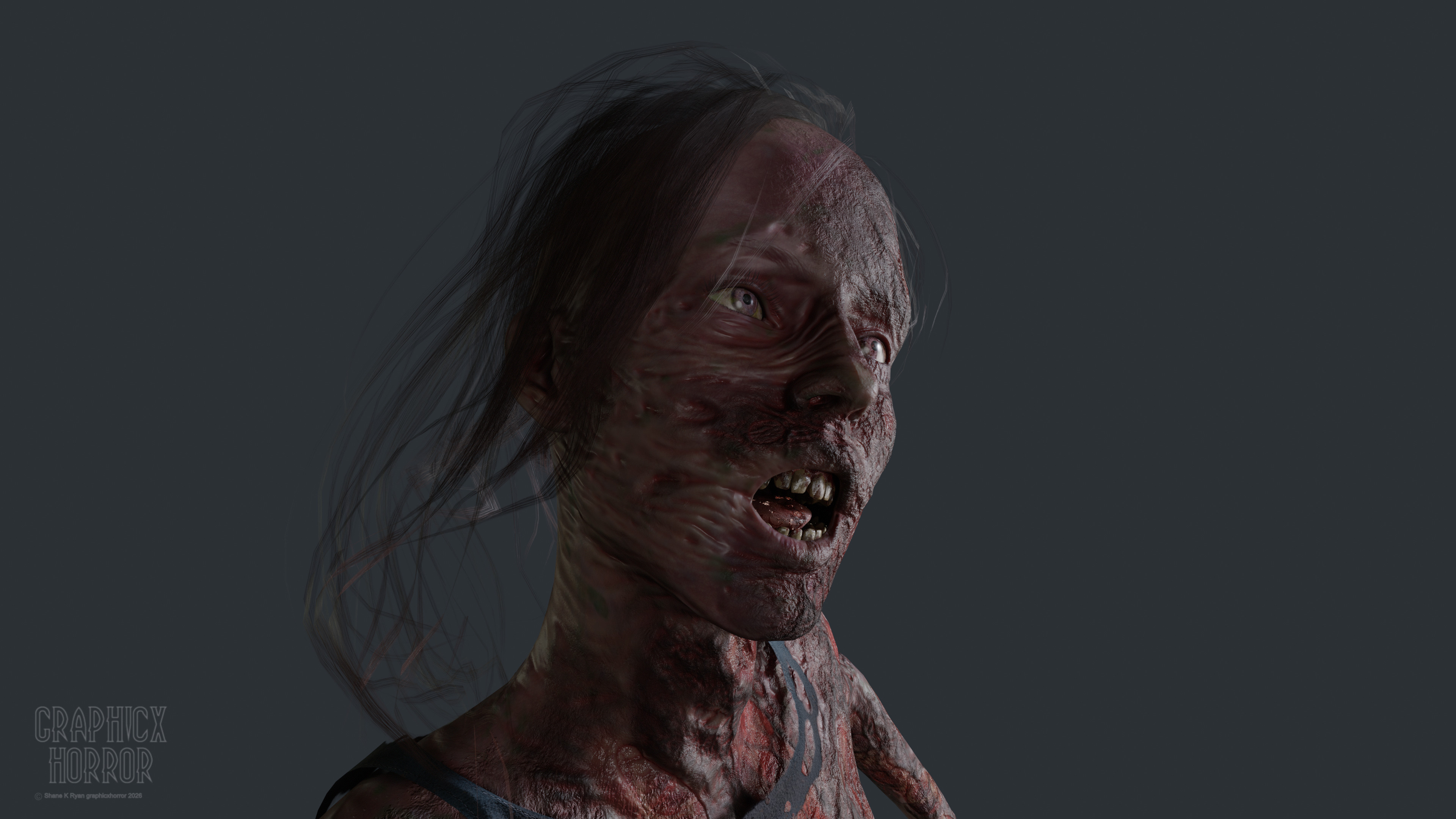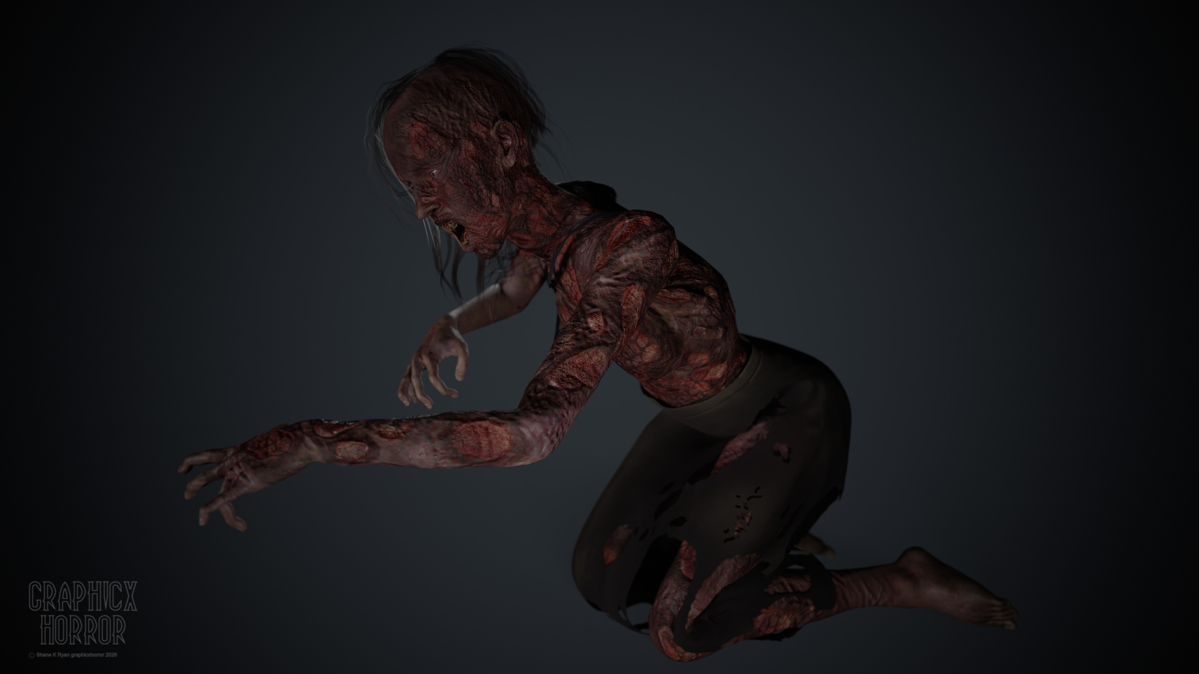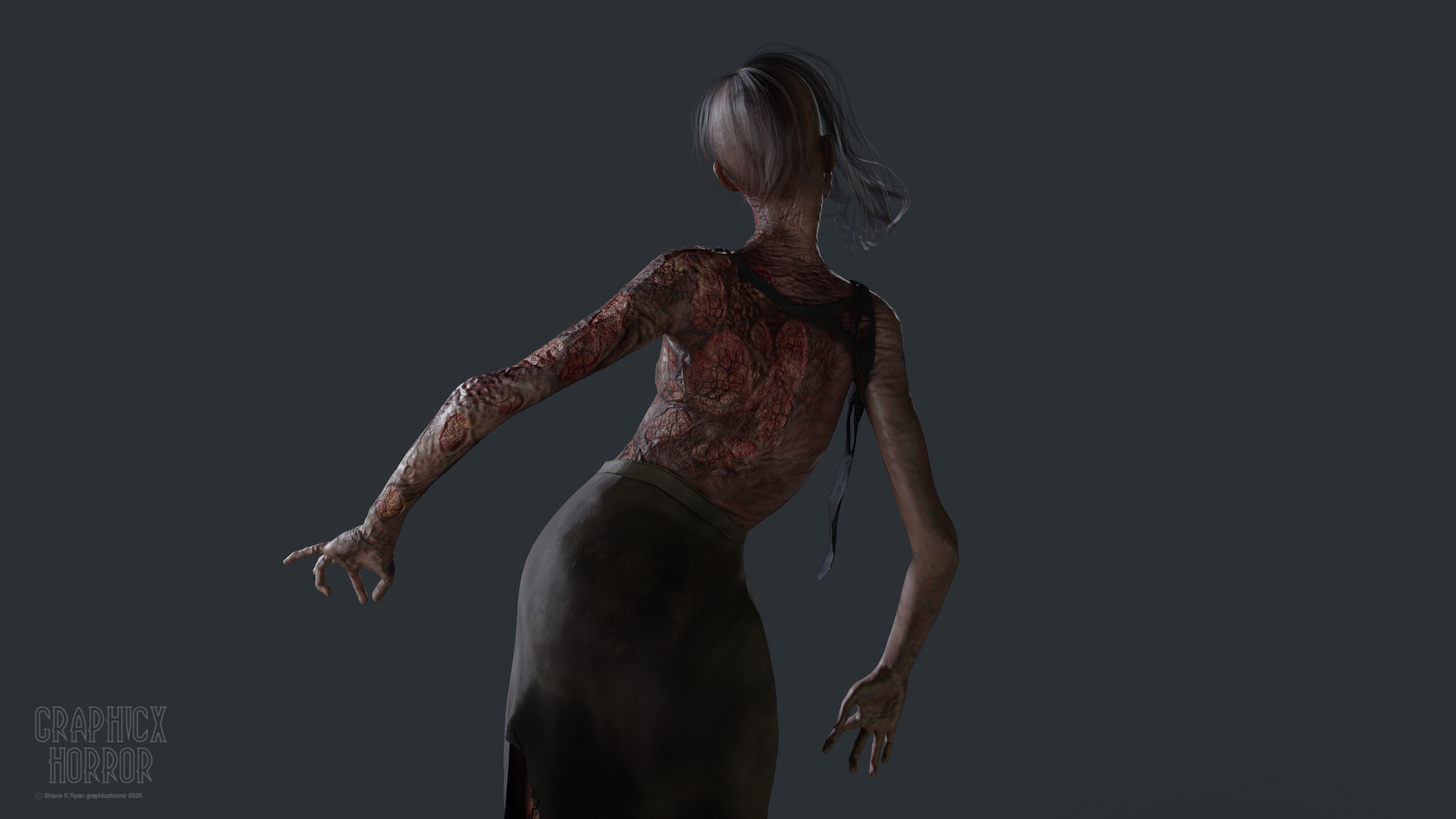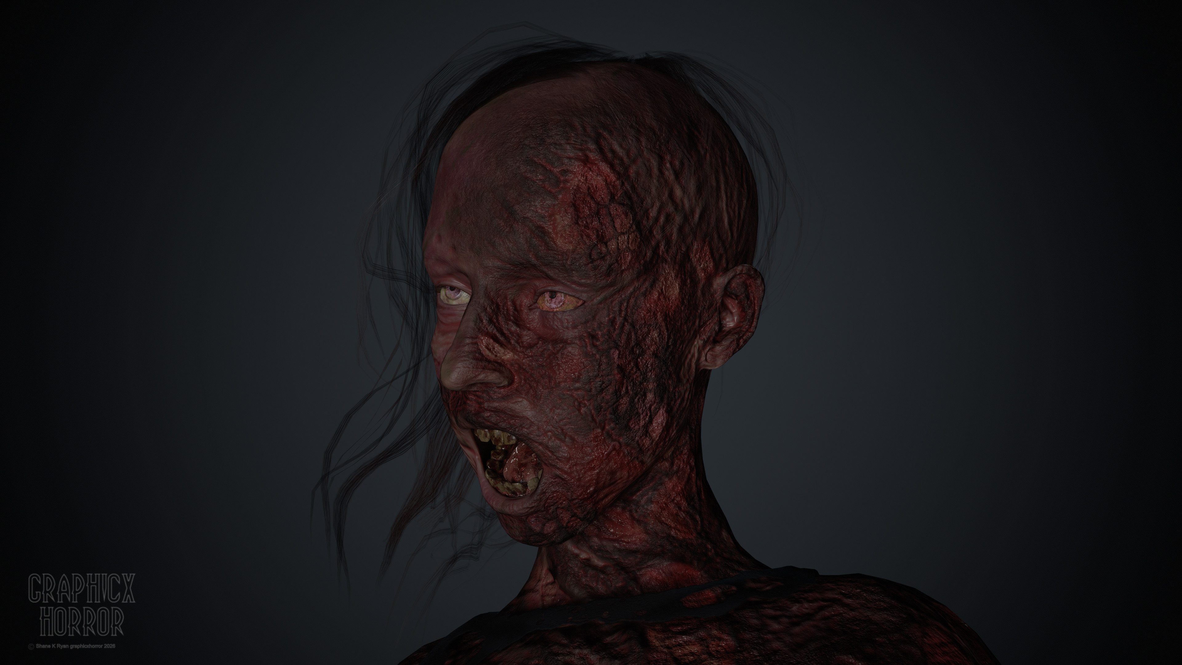 Game Ready Burnt Female Zombie. A human who was burnt and then came back as a zombie.